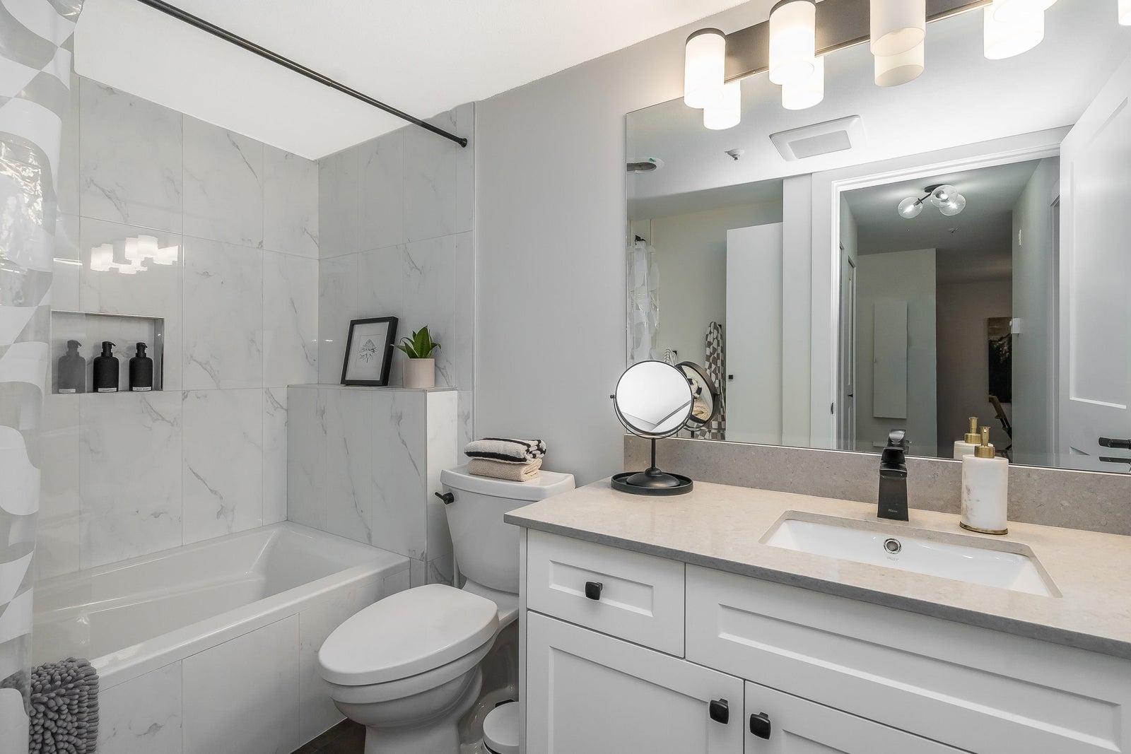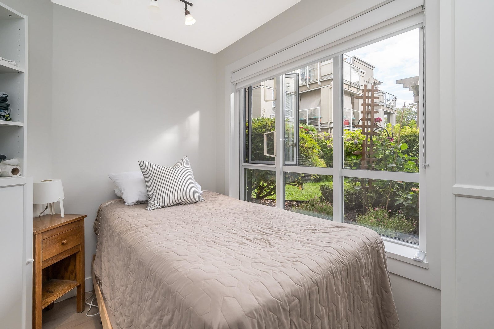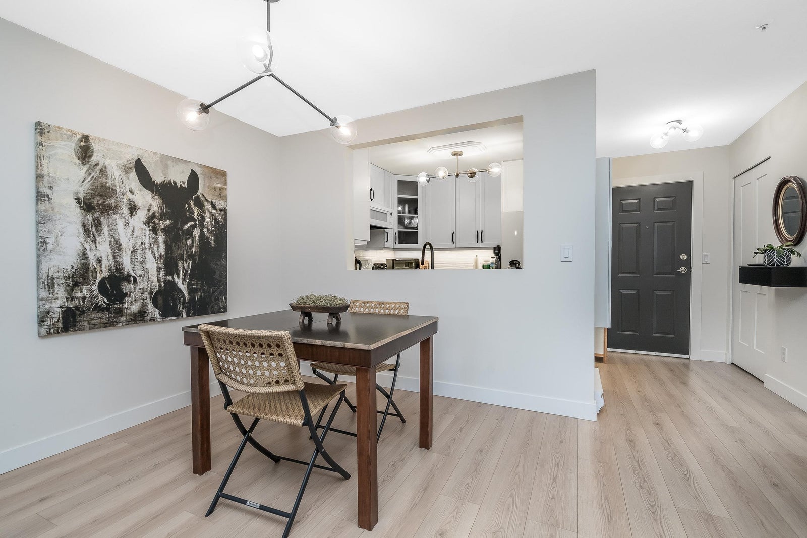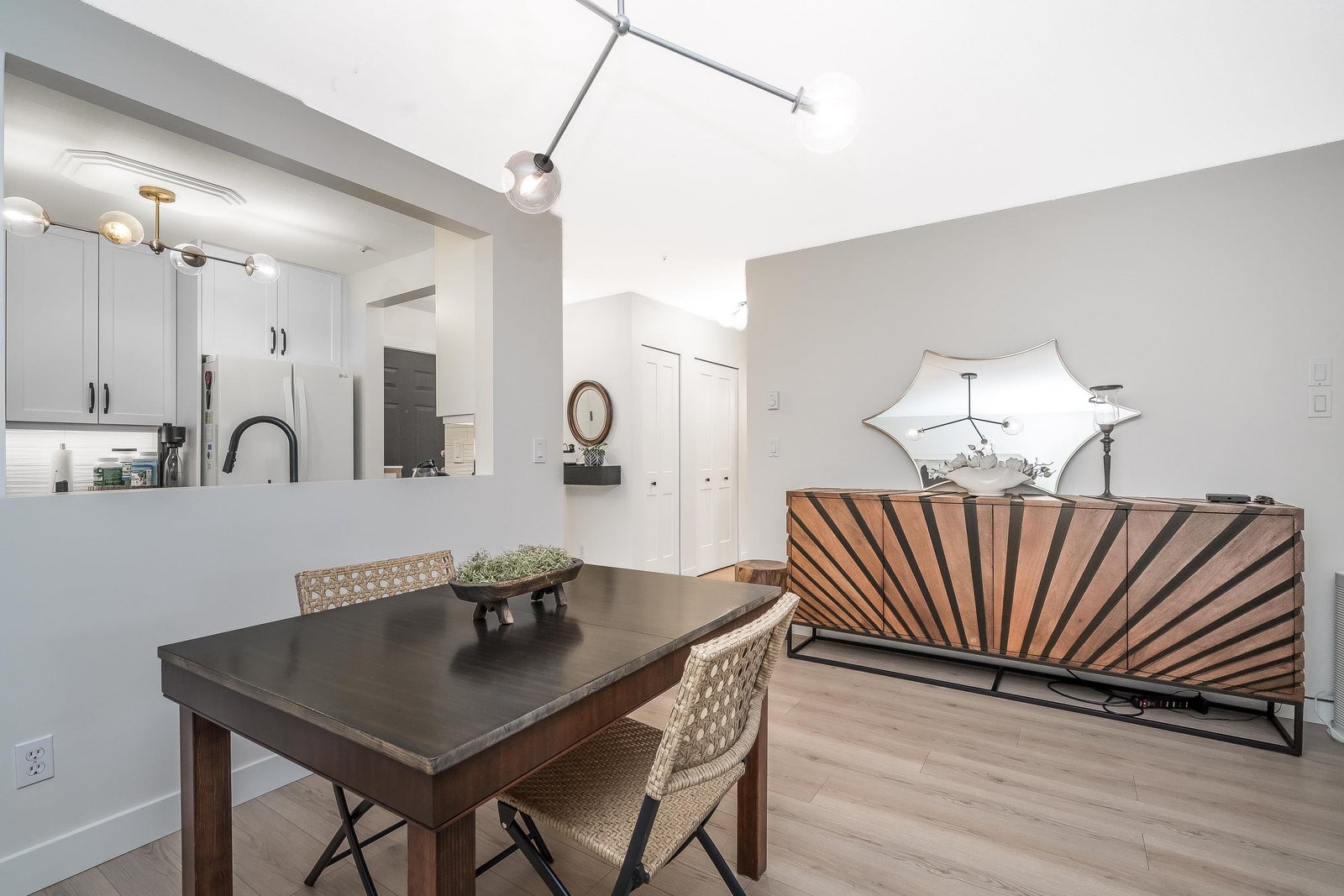 James Court – Ground-level luxury with no stairs from the lobby. This 2-bedroom garden walk-out home showcases $50K in high-end professional renovations. Garden view from both bedrooms. The kitchen features white maple shaker cabinets, under lighting, black quartz counters, undermount sink, custom tile backsplash, and upgraded lighting. Spa-inspired bath with maple vanity, quartz counter, ledging, new tub, fixtures, and full custom tile. High-end waterproof laminate, fresh neutral paint, 3-panel Silhouette shades on patio slider, and Silhouette blackout blinds to both bedrooms. No holes in walls—move-in ready. Cozy gas fireplace, secure parking, pet-friendly (1 cat/dog, 16”). Steps to Douglas Park community events and amenities. Decadent condo living—this may be your heart’s desire.